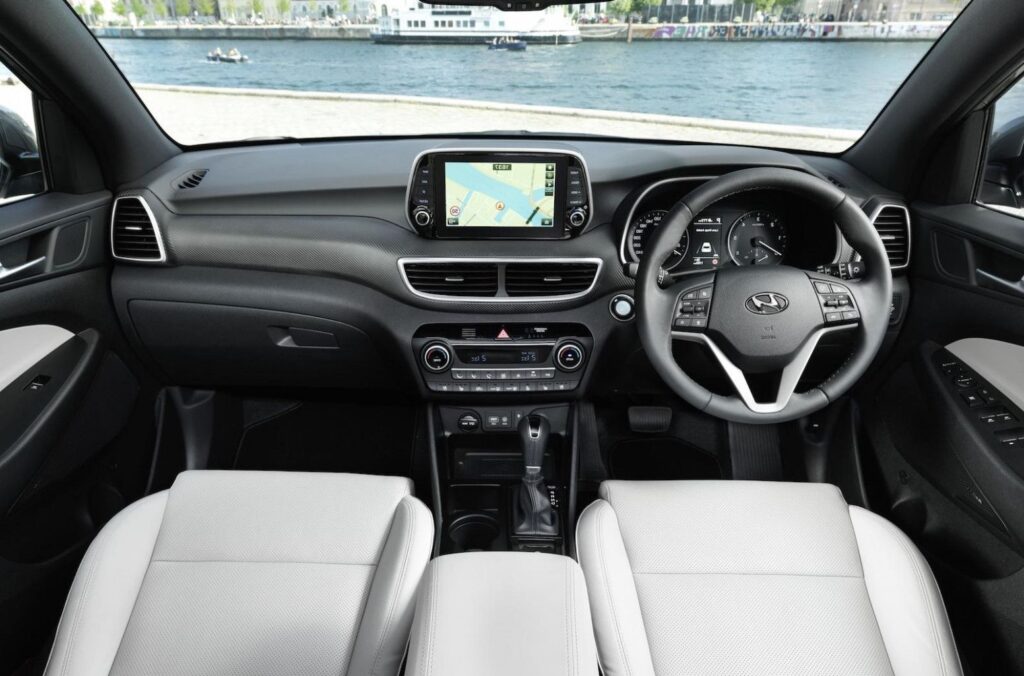 Inside the cabin, the Tucson offers a refined and well-organized layout. The dashboard features soft-touch materials, a digital instrument cluster, and a centrally placed infotainment screen. The cabin feels airy and well-built, with good attention to detail.