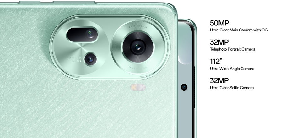 The Oppo Reno 11 5G Pro features a premium body with a smooth finish and an elegant camera design.